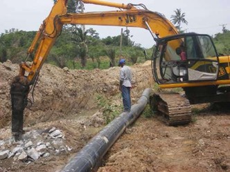 Welding and construction of 250mm steel pipes from Kpong Water Works to Yogaga Hill Reservoir.